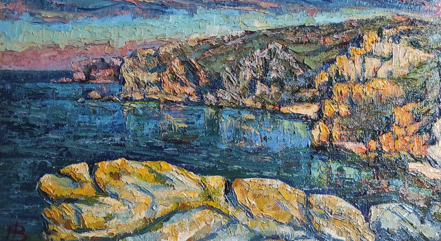 Предвечернее состояние скалистого берега моря. Этюд с натуры.